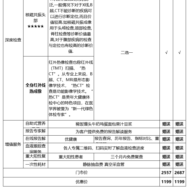 体检定制套餐
